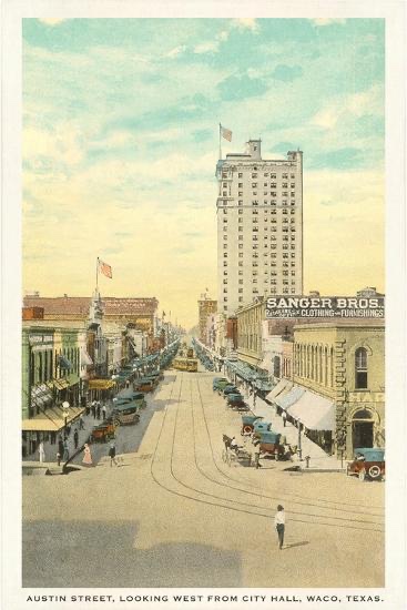 Looking west up Austin Avenue from Waco City Hall on the Square. Because of the presence of the American Amicable (ALICO) Building, we know this is post-1911.