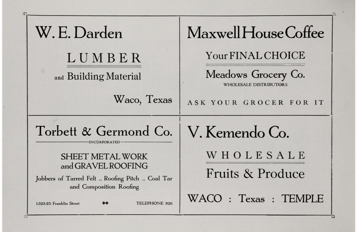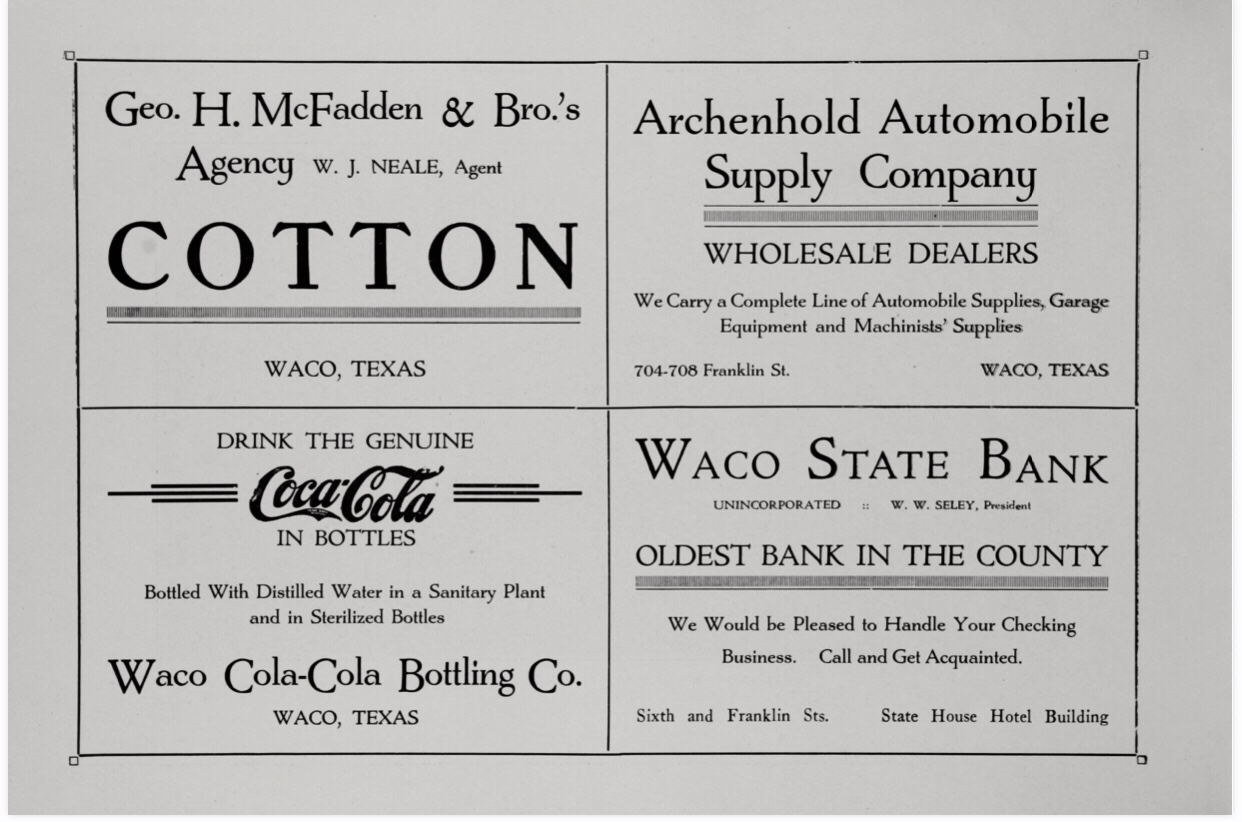 All photos from this booklet are by Fred Gildersleeve. From the Gildersleeve-Conger Collection at The Texas Collection, Baylor University. These photos were contributed by Mark Randolph/City of Waco.