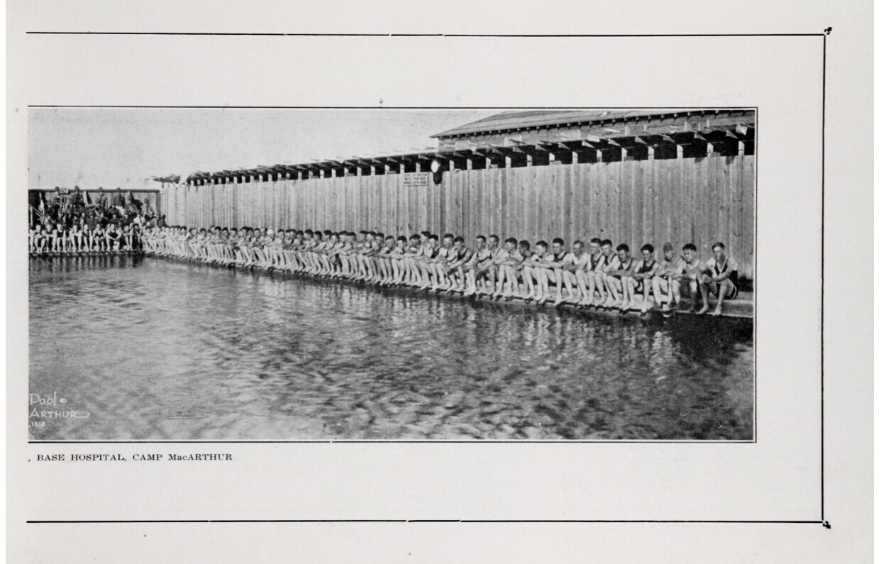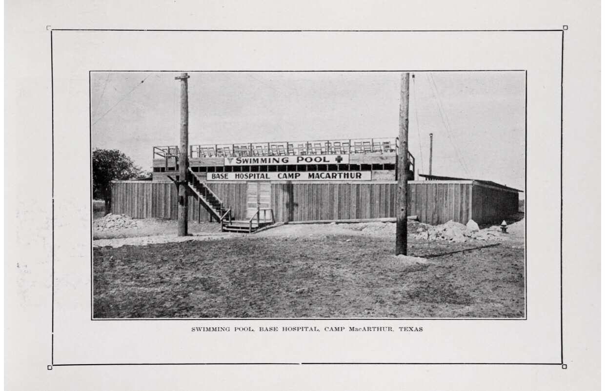 From the funds of the Post Exchange a swimming pool (one of the finest in Texas) was built, costing about $10,000.00. It has all the modern equipment and conveniences of a swimming pool. It’s at the disposal of the officers, nurses, and enlisted men of the Hospital. Something to be proud of.