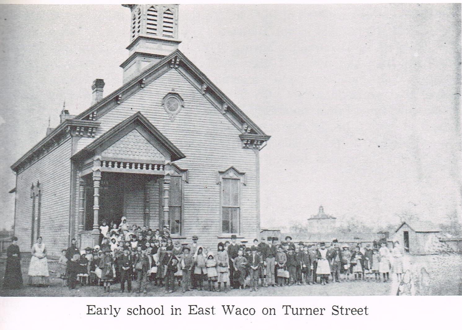 The Suspension Bridge was completed in 1870, and the City of Waco annexed East Waco in 1871. In 1872, the railroad made its way to East Waco, creating jobs and new opportunities for businesses there. In 1874, gaslights were installed in East Waco. The gas lines had been installed when the Suspension Bridge was built. In 1884, East Waco Elementary, the first public school in Waco built with tax dollars was built at 400 Turner Street. (1)