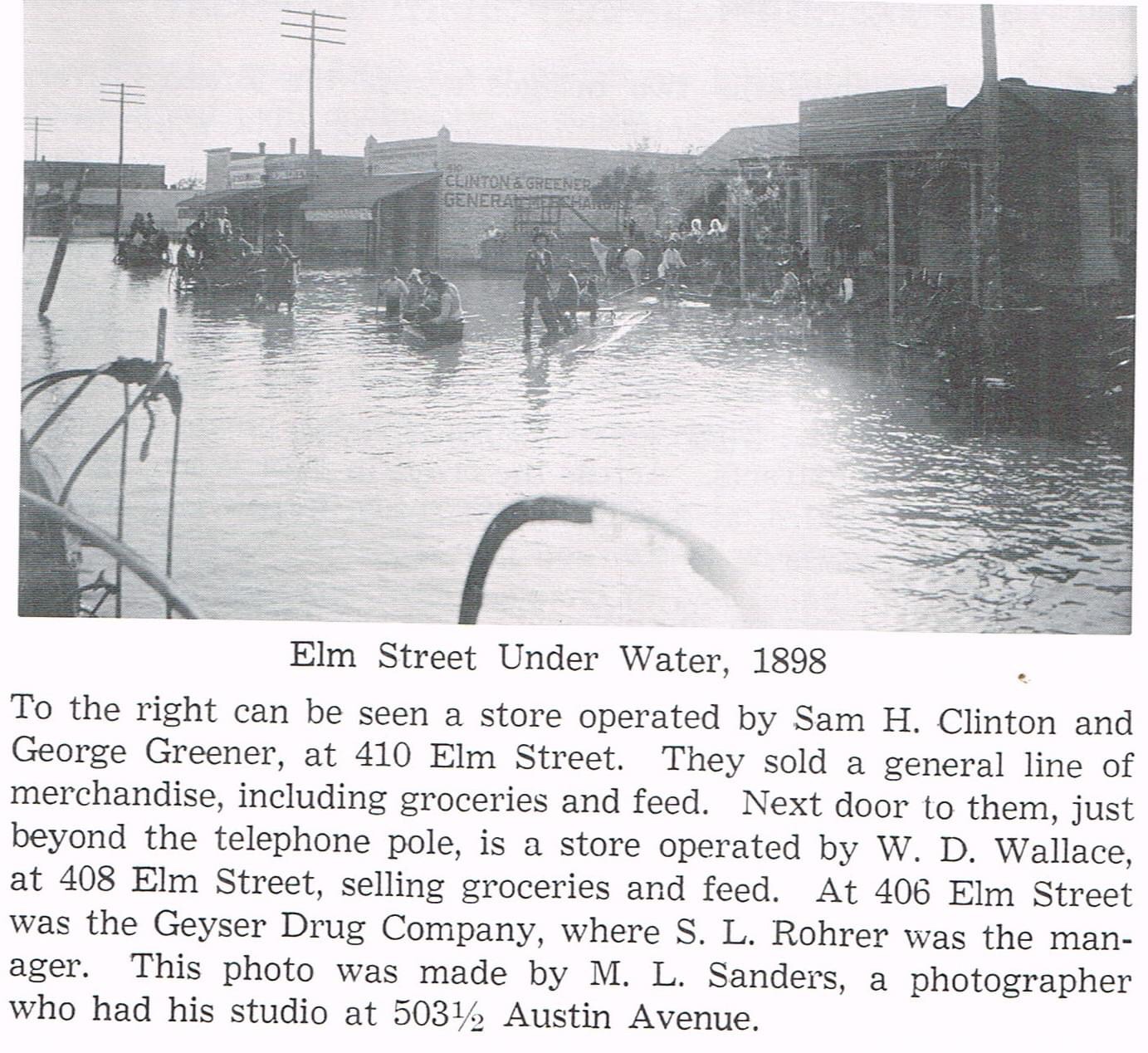 East Waco was always prone to flooding during heavy rains due to its lower elevation. The three worst flooding years that left parts of East Waco underwater were 1885, 1913 and 1936. With the construction of the Lake Whitney Dam and the new Lake Waco Dam, those flood waters have been made more controllable.