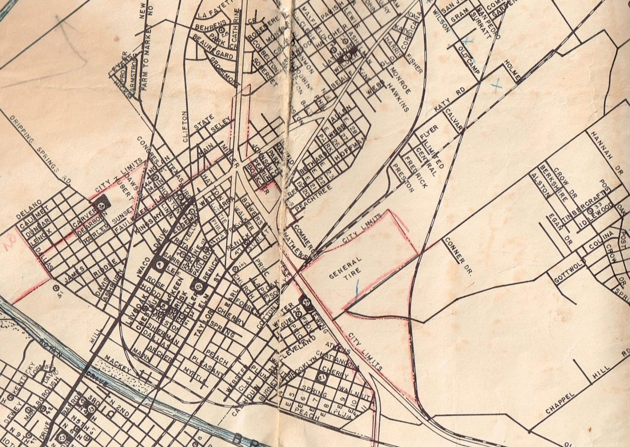 img_7085 Undated map drawn by Charles Bettinger. After 1951 due to the presence of Waco Drive. This map was contributed by Sonny Helm. Like Loading...