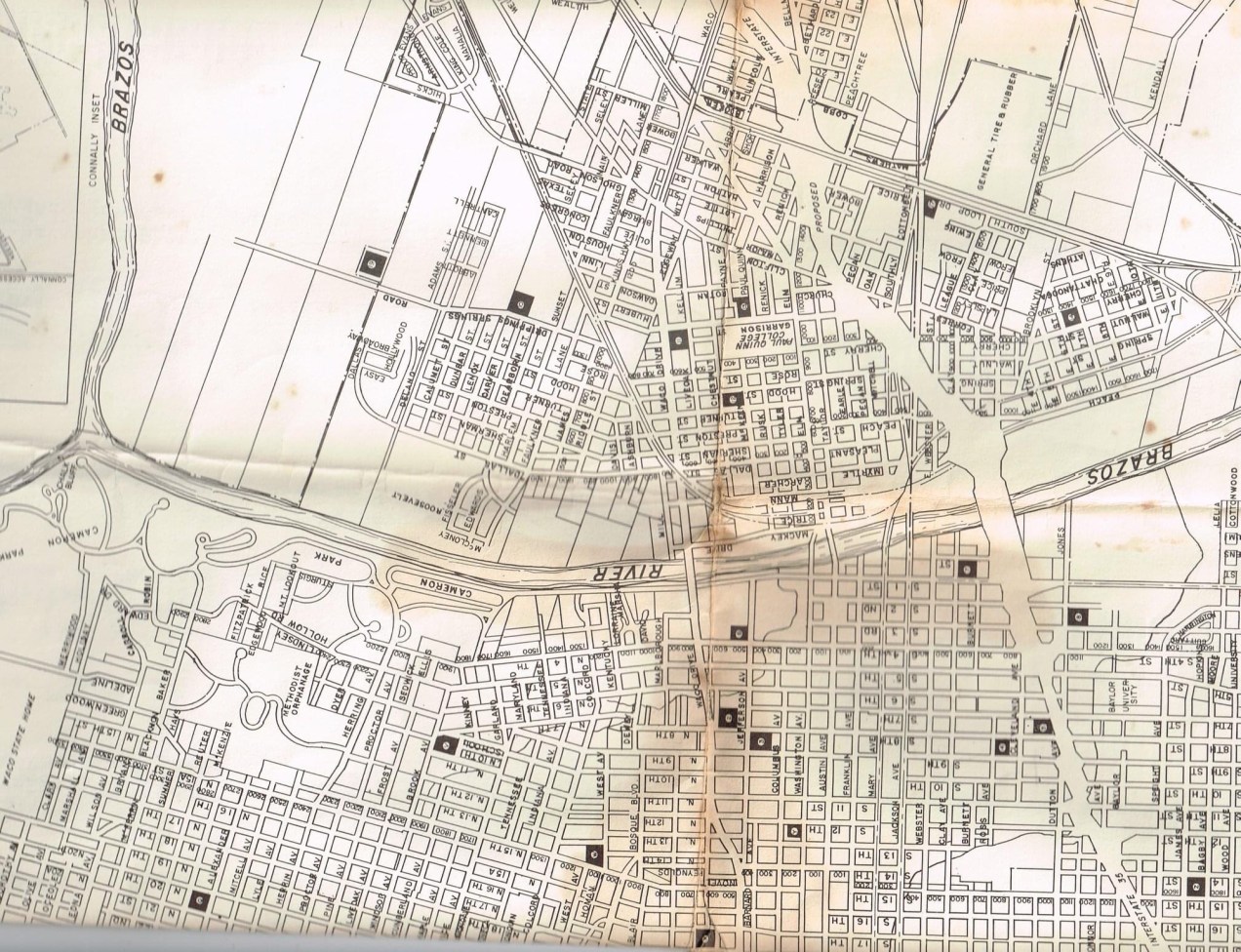 img_7088 This is a 1966 revision of a 1956 map. Notice the space being made for I-35.This map was contributed by Sonny Helm. Like Loading...