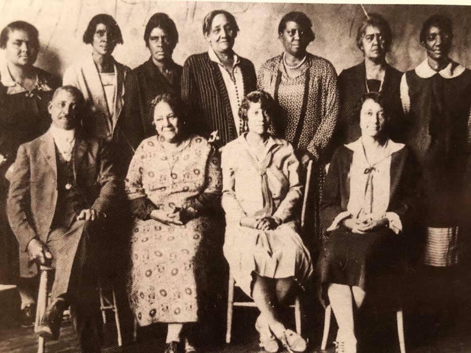 “In the early 1930s, principal J. H. Hines and the teachers at the East Waco School had this picture taken. Seated from left are Hines, Pauline Anderson, and Mrs. Williams. On the second row from left are Leona Smith, Minnie Wilhite, Mrs. O. V. E. Bartlett, Eliza Banks, Ruby Smith, Effie Webster, and Effie Foreman. From The Texas Collection, Baylor University.”