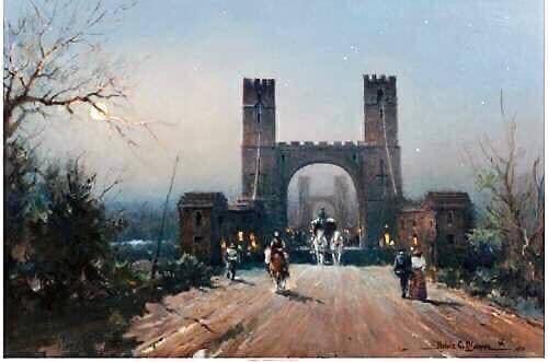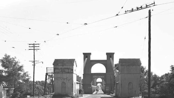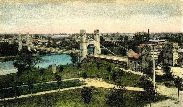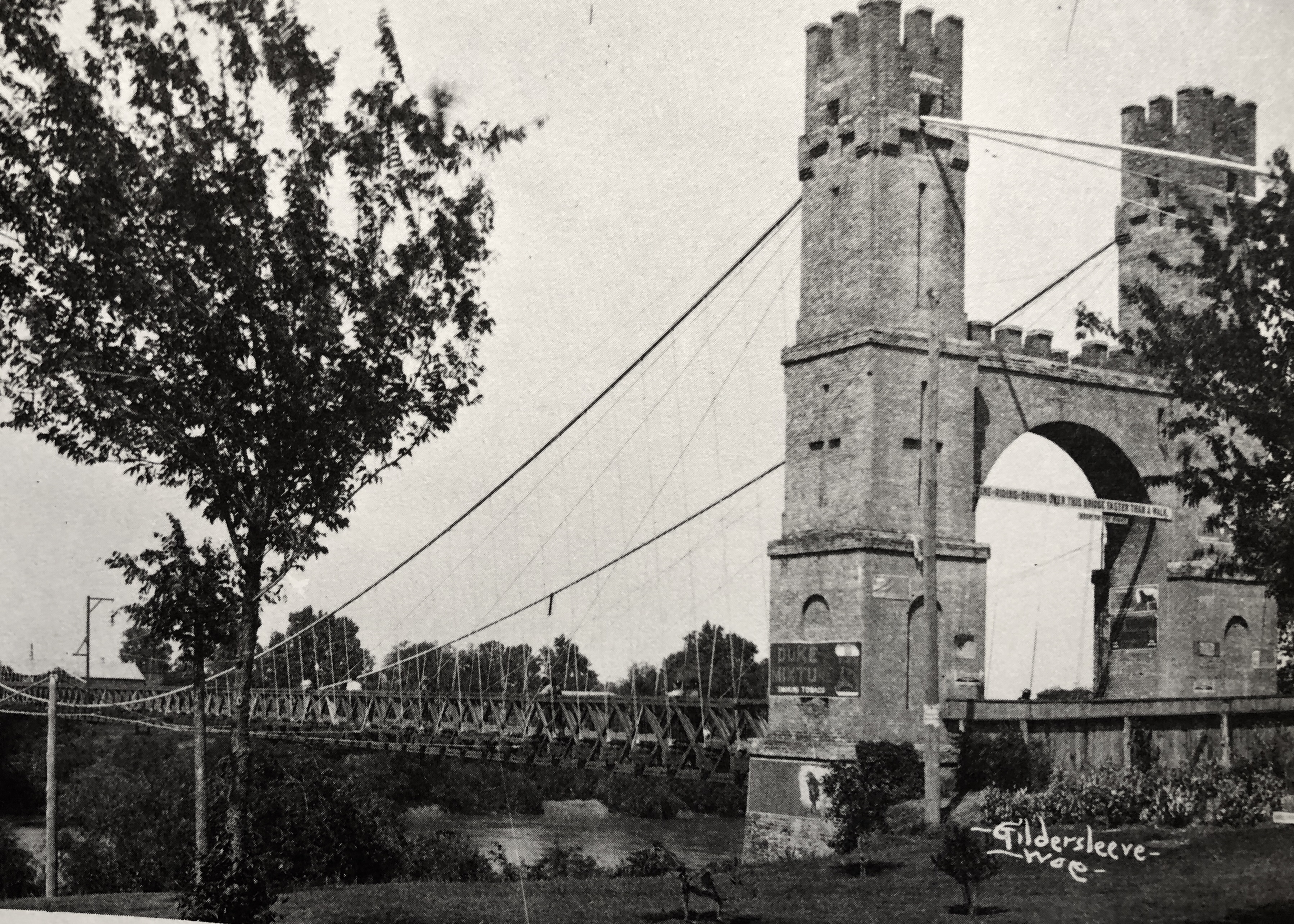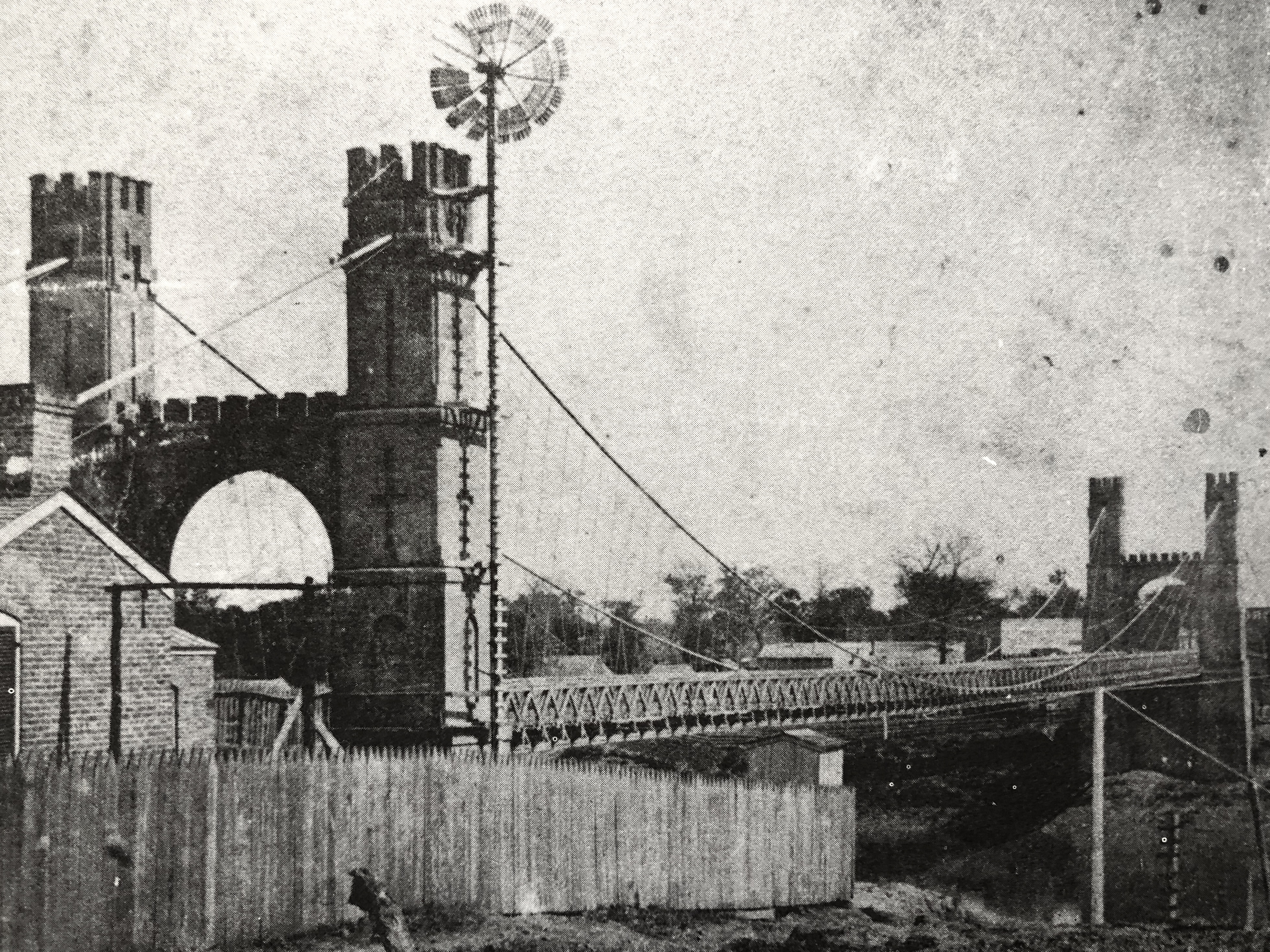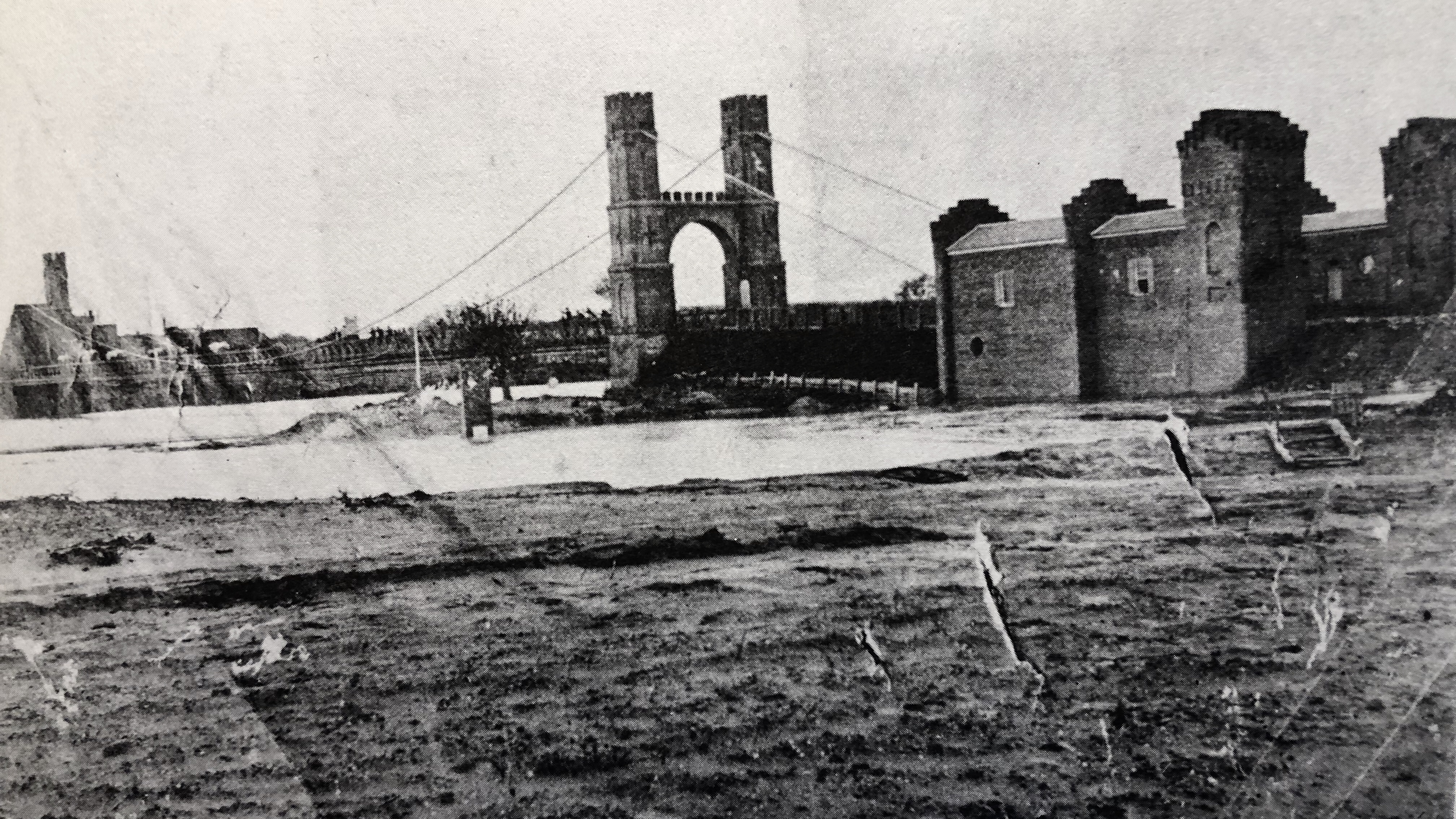 First known photo of the Suspension Bridge. Notice toll-keeper’s cottage and yard.